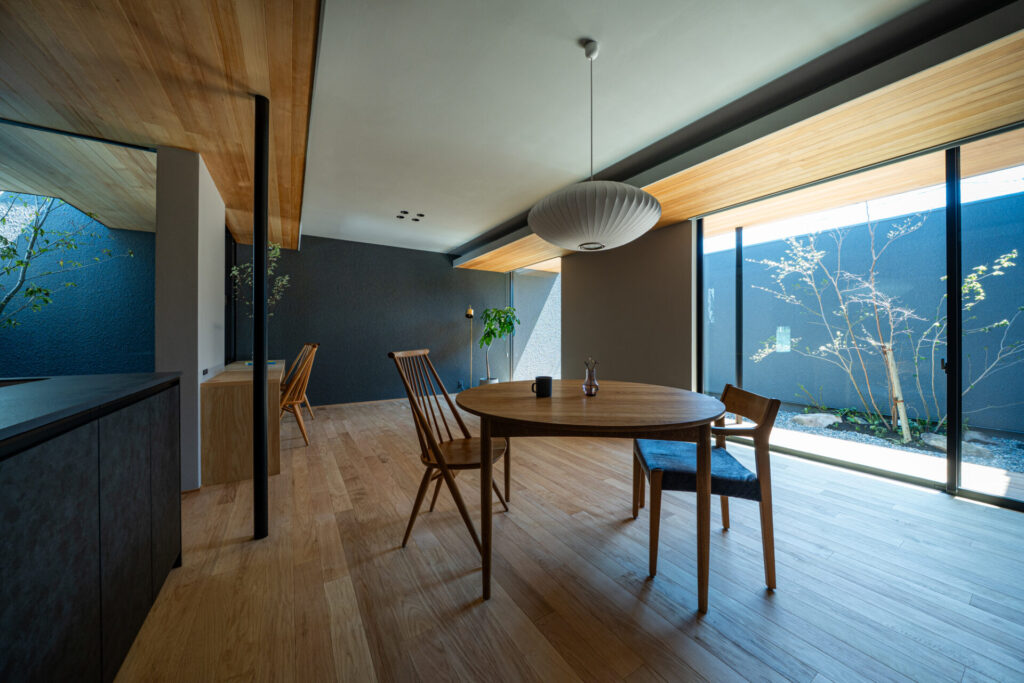 交通量の多い立地ながら視線を遮り、中庭から光を招き入れる設計。