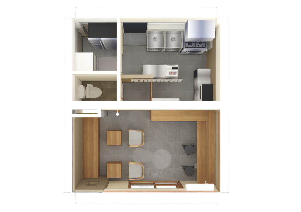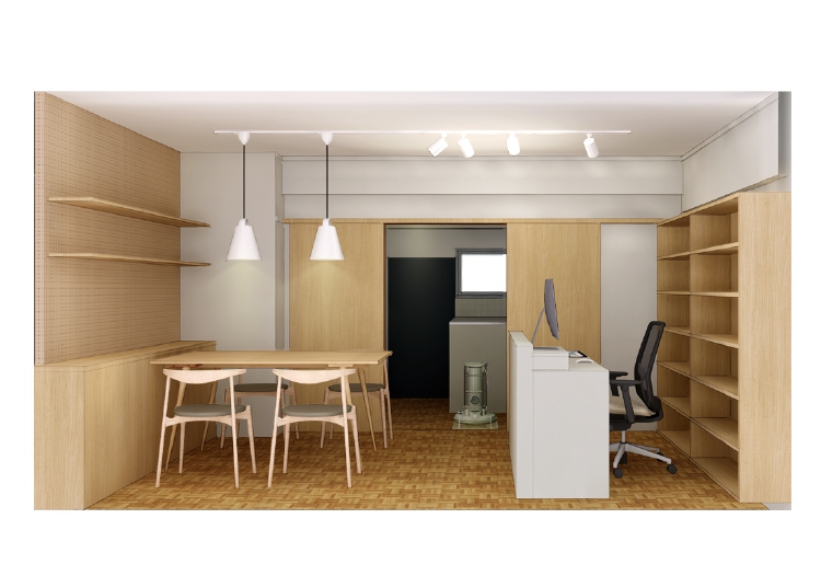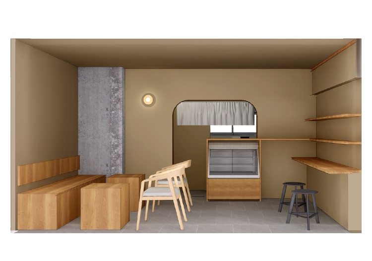 5畳の部屋はバックヤードとし、バルコニー側にはイートインスペースを設けました。