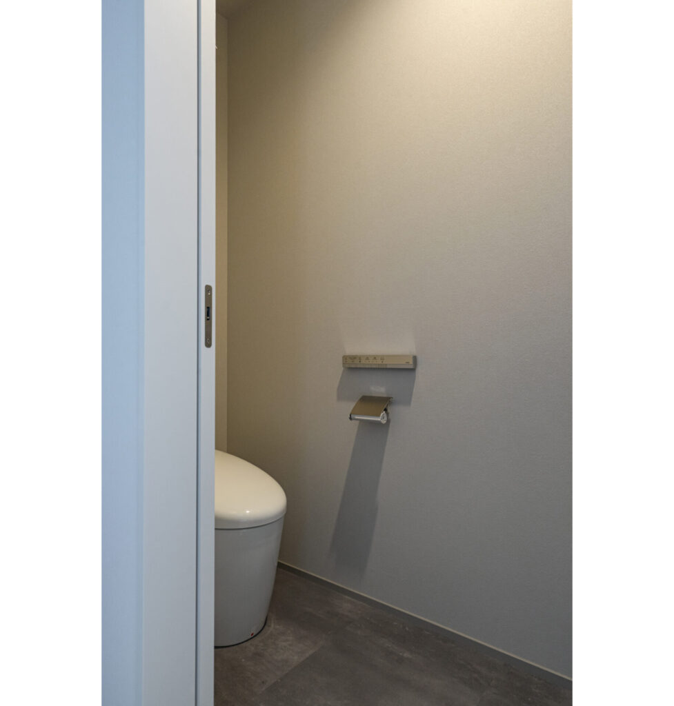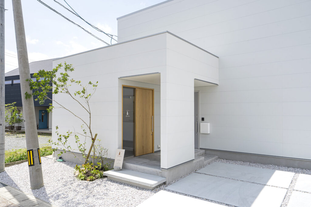またエントランスは店舗部分と住居部分で分かれていますが、スタッフ動線は住居側のホールを介して繋がっています。