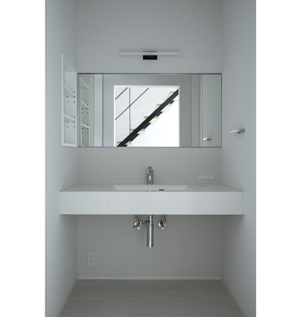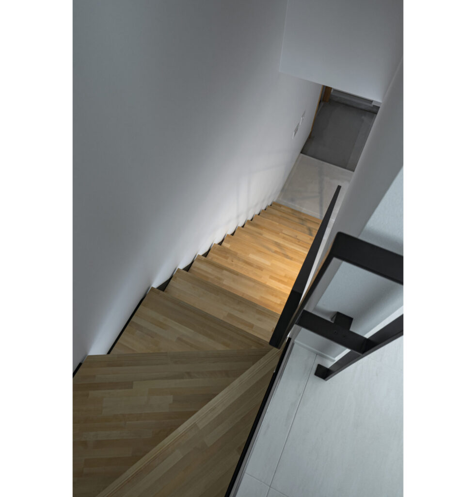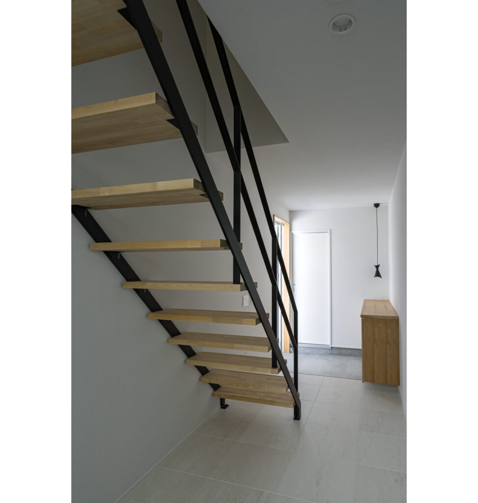 ホールに広がりと明るさをもたらすスケルトン階段により、視覚的なリズムも生まれました。