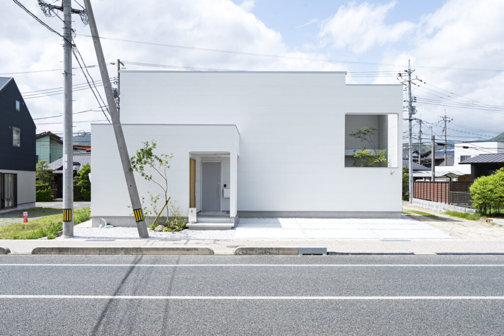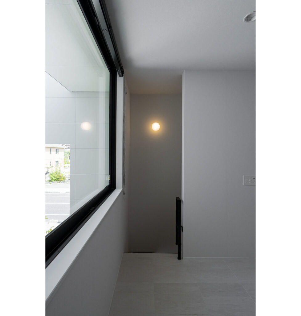 街並みから視線を遮る外壁の開口は、一緒に暮らすペットたちが外へ飛び出さない高さを基準に定めました。