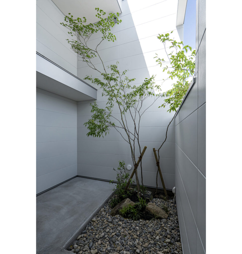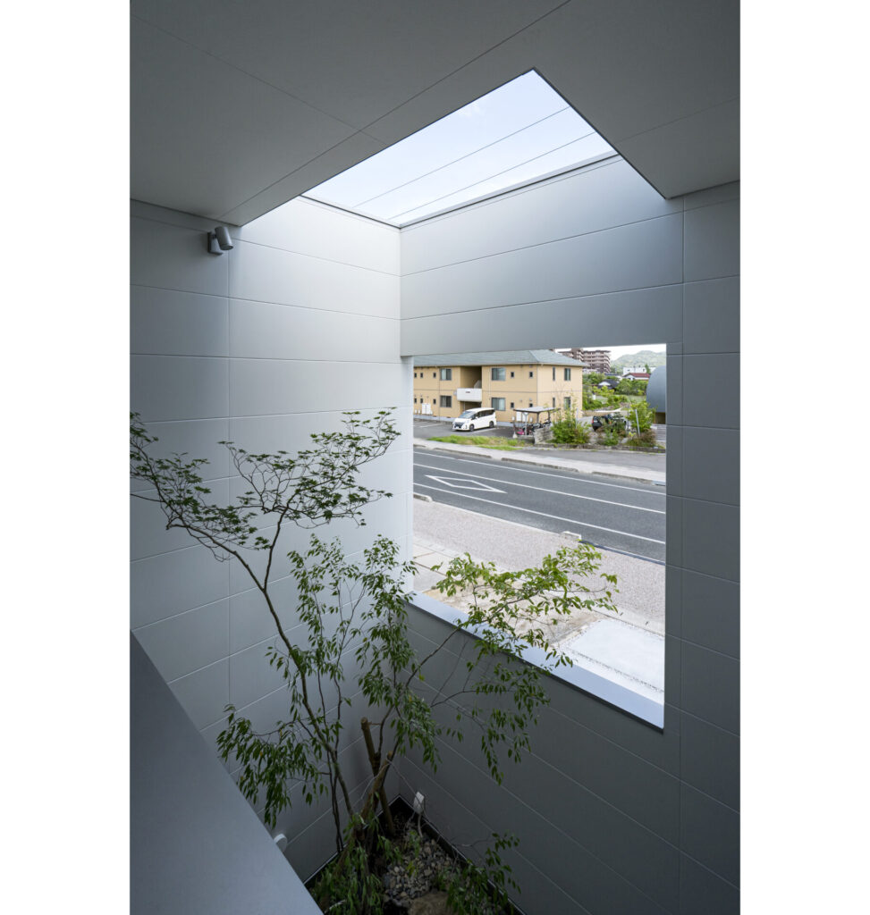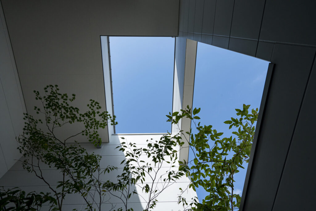 屋根の一部をひらくことで植栽を育む光と水、室内には風光や空の景色を取りいれる役割も担います。